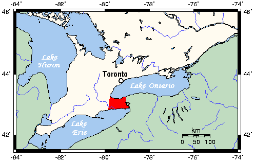 Climate: it has a humid continental climate which is moderated to an extent in all seasons by proximity to water bodies. In winter it can receive snow-squalls from both Lake Erie and Lake Ontario.